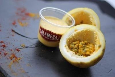 Crema de leche, leche condensada, maracuyá, chispas de chocolate y gelatina sin sabor.